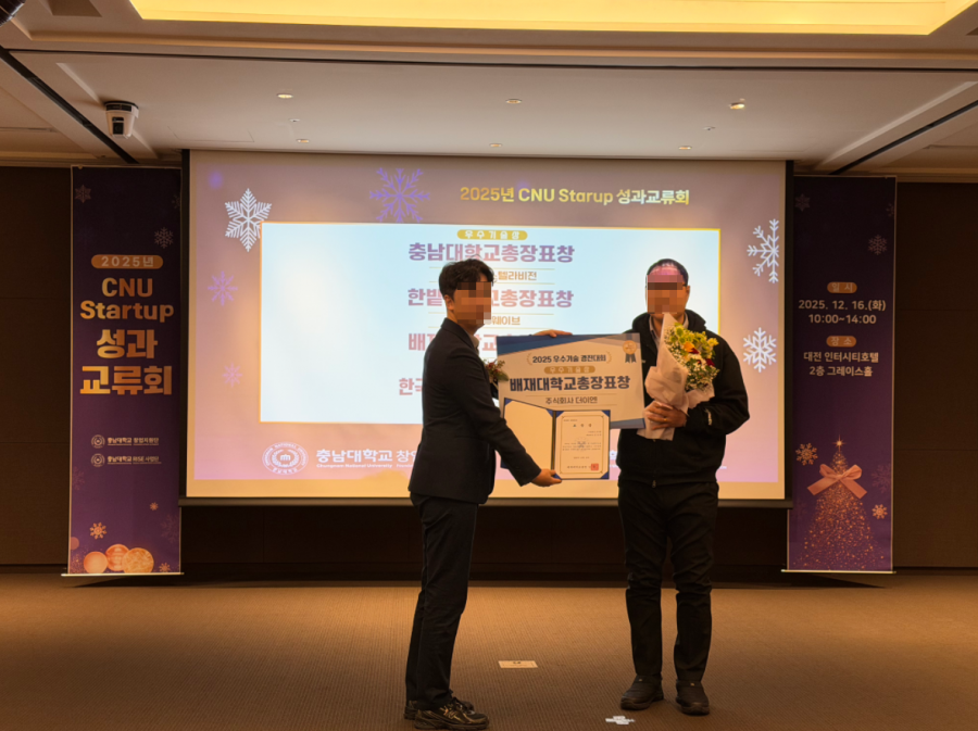 ㈜더이엔(TheEN)은 2025년 12월 16일 개최된 ‘2025 CNU Startup 성과교류회’에서 배재대학교총장표창을 수상하며 기술 경쟁력과 성장 가능성을 인정받았다.